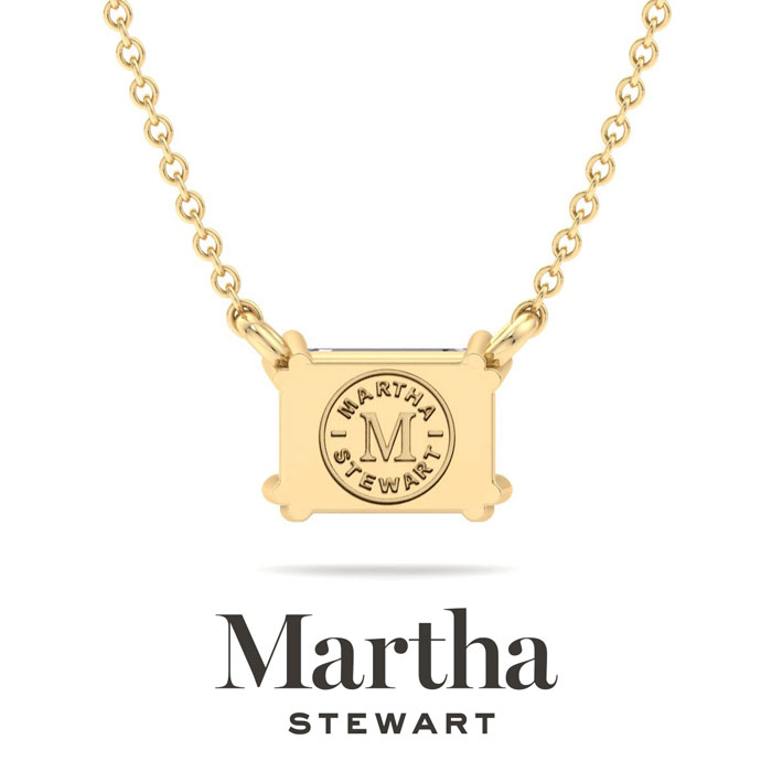 Showcasing class, style and timeless sophistication, the Martha Stewart fine jewelry collection is here to be celebrated. This Martha Stewart lab grown diamond necklace features a 2 carat emerald cut center lab grown diamond in G-H color, VS clarity. This necklace is in 14 karat yellow gold and has a double-prong setting. The chain is 17 inches long with options to wear at 15 and 16 inches. There is a secure lobster-claw clasp and this necklace has a patent pending mirrored setting which increases the primary diamond's brilliance and beauty. Whether worn for a special occasion or to add a touch of elegance to daily wear, this necklace is sure to become a treasured heirloom. Martha Stewart’s unwavering attention to detail and dedication to quality are evident in every piece, making this collection a celebration of timeless beauty and exceptional craftsmanship.