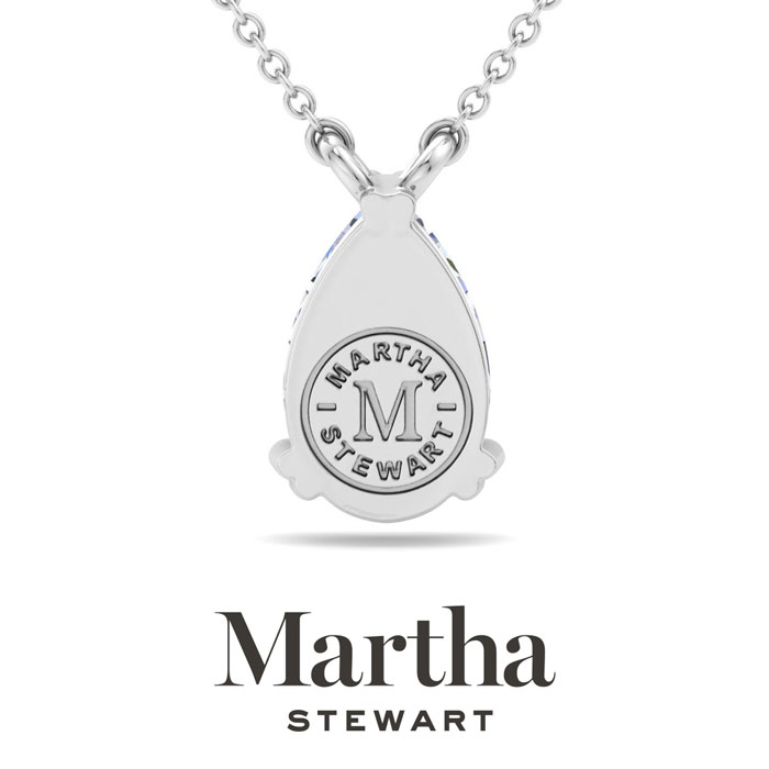 Showcasing class, style and timeless sophistication, the Martha Stewart fine jewelry collection is here to be celebrated. This Martha Stewart lab grown diamond necklace features a 3 carat pear shape center lab grown diamond in G-H color, VS clarity. This necklace is in 14 karat white gold and has a double-prong setting. The chain is 17 inches long with options to wear at 15 and 16 inches. There is a secure lobster-claw clasp and this necklace has a patent pending mirrored setting which increases the primary diamond's brilliance and beauty. Whether worn for a special occasion or to add a touch of elegance to daily wear, this necklace is sure to become a treasured heirloom. Martha Stewart’s unwavering attention to detail and dedication to quality are evident in every piece, making this collection a celebration of timeless beauty and exceptional craftsmanship.