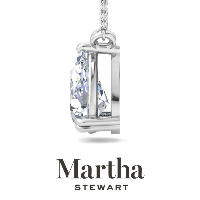 Showcasing class, style and timeless sophistication, the Martha Stewart fine jewelry collection is here to be celebrated. This Martha Stewart lab grown diamond necklace features a 3 carat pear shape center lab grown diamond in G-H color, VS clarity. This necklace is in Sterling Silver and has a double-prong setting. The chain is 17 inches long with options to wear at 15 and 16 inches. There is a secure lobster-claw clasp and this necklace has a patent pending mirrored setting which increases the primary diamond's brilliance and beauty. Whether worn for a special occasion or to add a touch of elegance to daily wear, this necklace is sure to become a treasured heirloom. Martha Stewart’s unwavering attention to detail and dedication to quality are evident in every piece, making this collection a celebration of timeless beauty and exceptional craftsmanship.