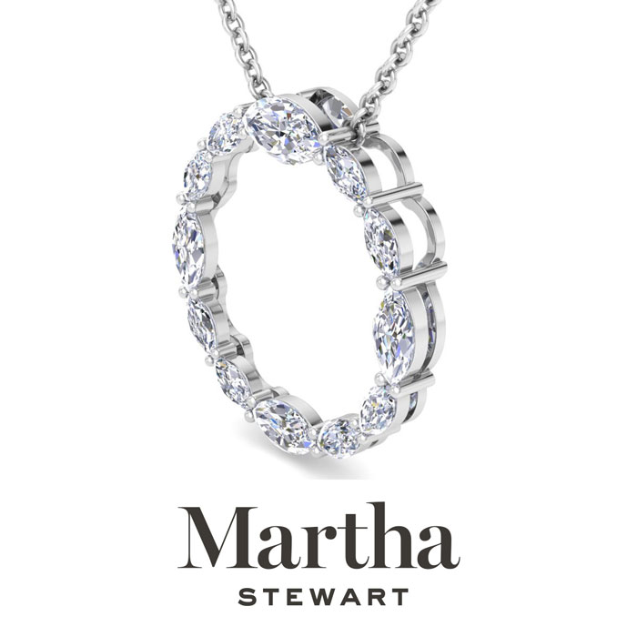 Showcasing class, style and timeless sophistication, the Martha Stewart fine jewelry collection is here to be celebrated. This Martha Stewart lab grown diamond necklace features 12 marquise shape lab grown diamonds including a 1 carat lab grown diamond in G-H color, VS clarity totaling 4 carats. This necklace is in 14 karat white gold. The chain is 17 inches long with options to wear at 15 and 16 inches. There is a secure lobster-claw clasp and is 1 1/4 inches in diameter. Whether worn for a special occasion or to add a touch of elegance to daily wear, this necklace is sure to become a treasured heirloom. Martha Stewart’s unwavering attention to detail and dedication to quality are evident in every piece, making this collection a celebration of timeless beauty and exceptional craftsmanship.