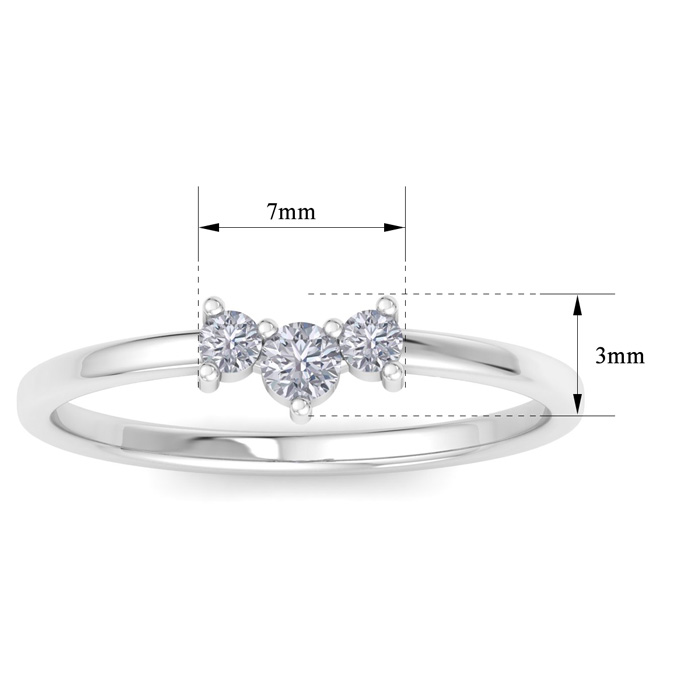 This diamond ring features 3 sparkling lab grown diamonds. Total carat weight is 0.16 carats. Diamond color is G-H, diamond clarity is VS. This ring is in sterling silver.