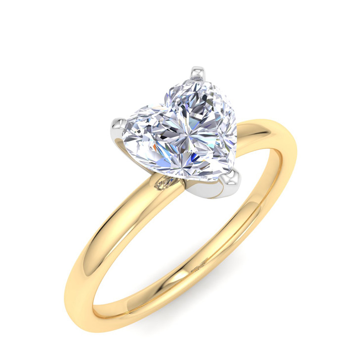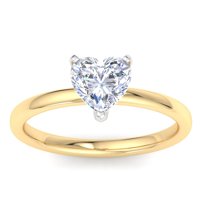 1 Carat Heart Shape Lab Grown Diamond Ring In 14K Yellow Gold, Solitaire