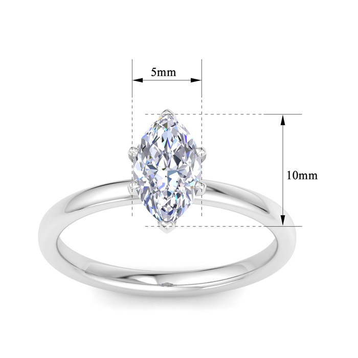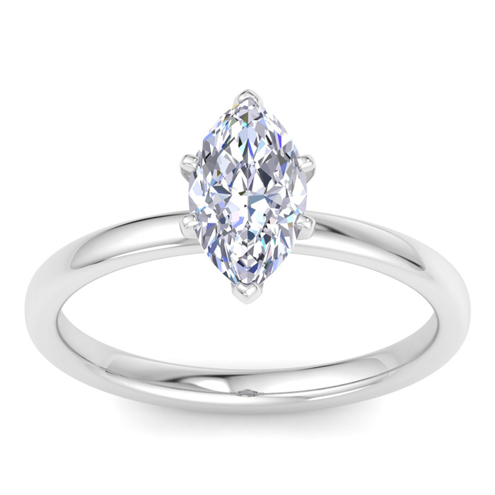1 Carat Marquise Shape Lab Grown Diamond Ring In 14K White Gold, Solitaire