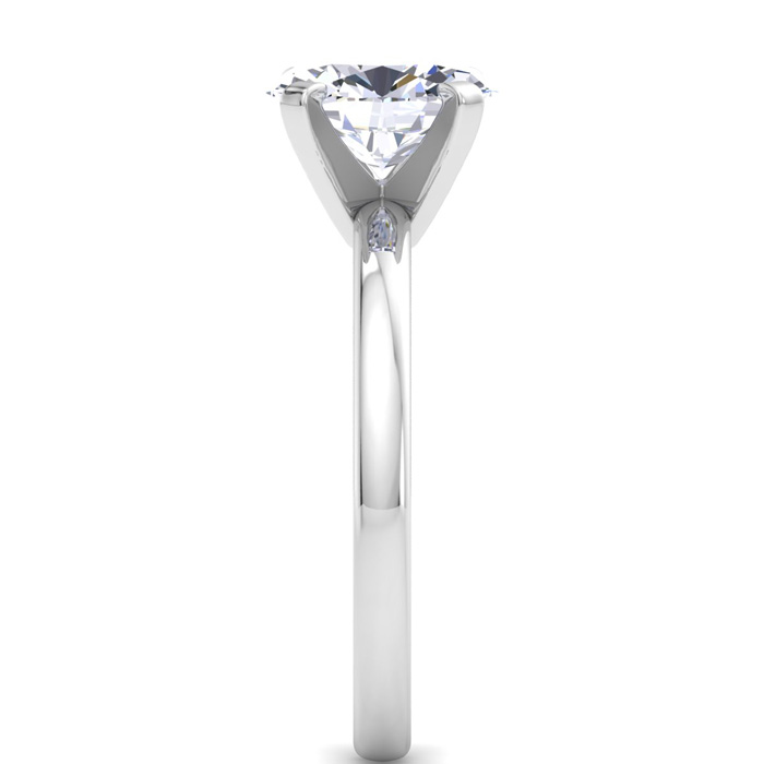 This lab grown diamond ring features a 2 carat oval shape center lab grown diamond in G-H color, VS clarity. This ring is in 14 karat white gold.