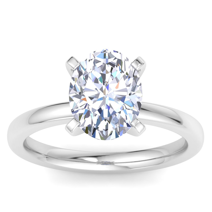3.05 Carat Oval Shape Lab Grown Diamond Ring In 14K White Gold, Solitaire