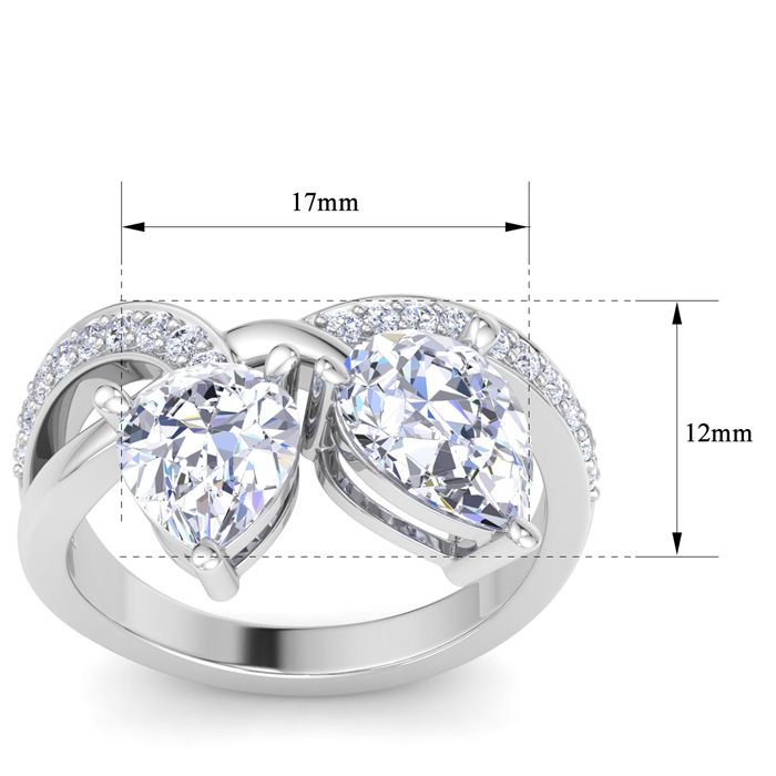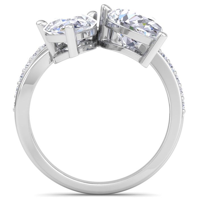 3 1/2 Carat Lab Grown Diamond Two Stone Engagement Ring In 14 Karat White Gold, Pear