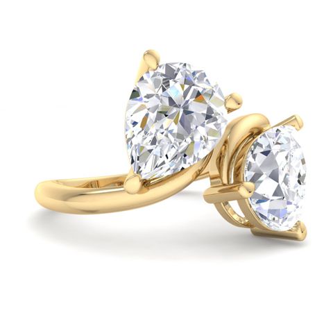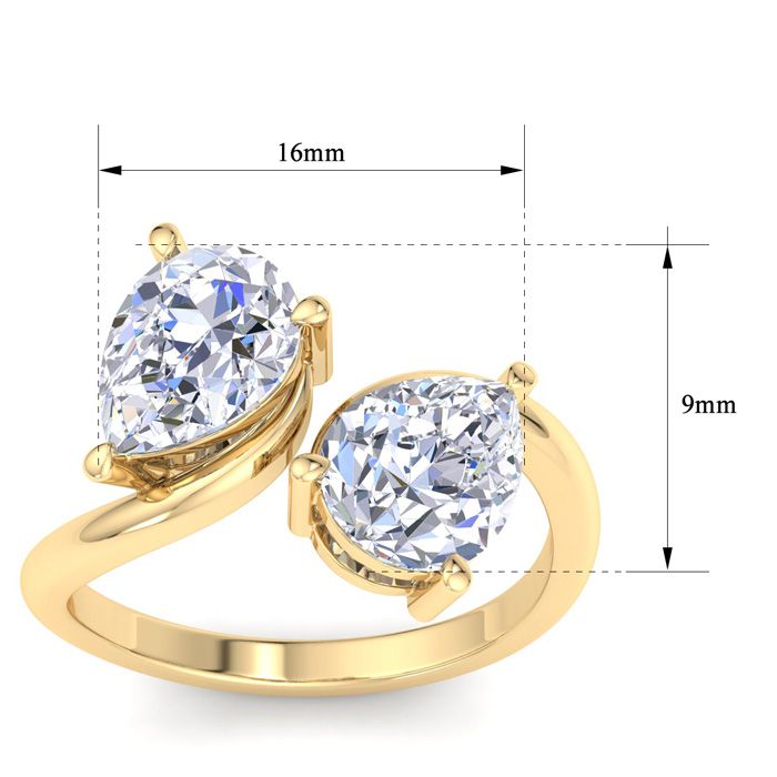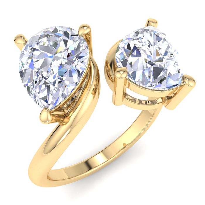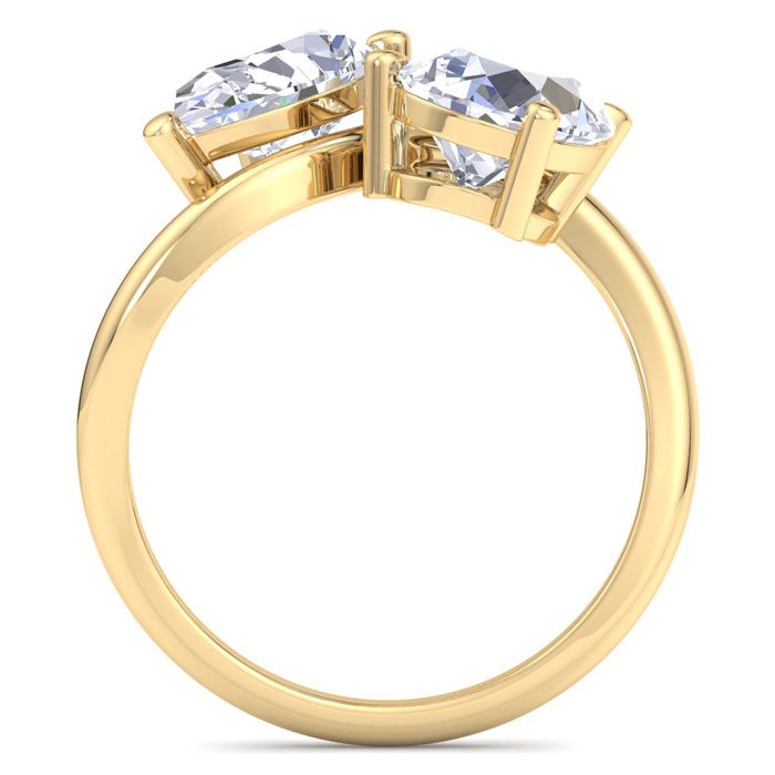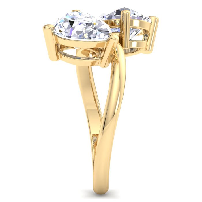 3 1/2 Carat Lab Grown Diamond Two Stone Engagement Ring In 14 Karat Yellow Gold, Pear-Pear