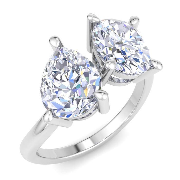 3 Carat Lab Grown Diamond Two Stone Engagement Ring In 14 Karat White Gold, Pear-Oval