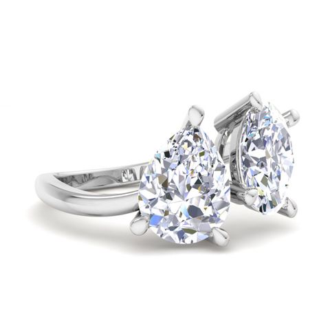 3 Carat Lab Grown Diamond Two Stone Engagement Ring In 14 Karat White Gold, Pear-Oval