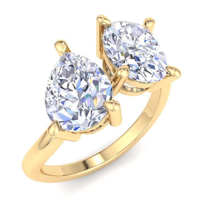 3 Carat Lab Grown Diamond Two Stone Engagement Ring In 14 Karat Yellow Gold, Pear-Oval