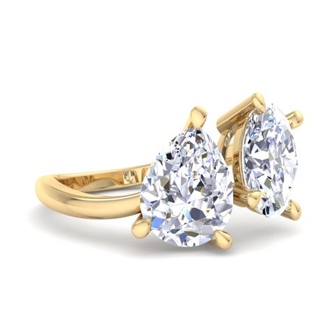 3 Carat Lab Grown Diamond Two Stone Engagement Ring In 14 Karat Yellow Gold, Pear-Oval