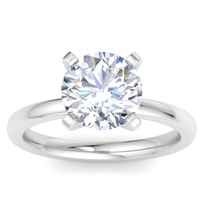 3 Carat Round Shape Lab Grown Diamond Ring In 14K White Gold, Solitaire 6 Prong Setting
