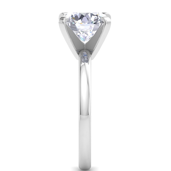 This lab grown diamond ring features a 3 carat round shape center lab grown diamond in G-H color, VS clarity. This ring is in 14 karat white gold.