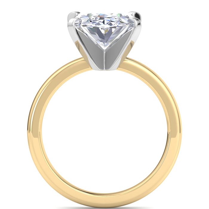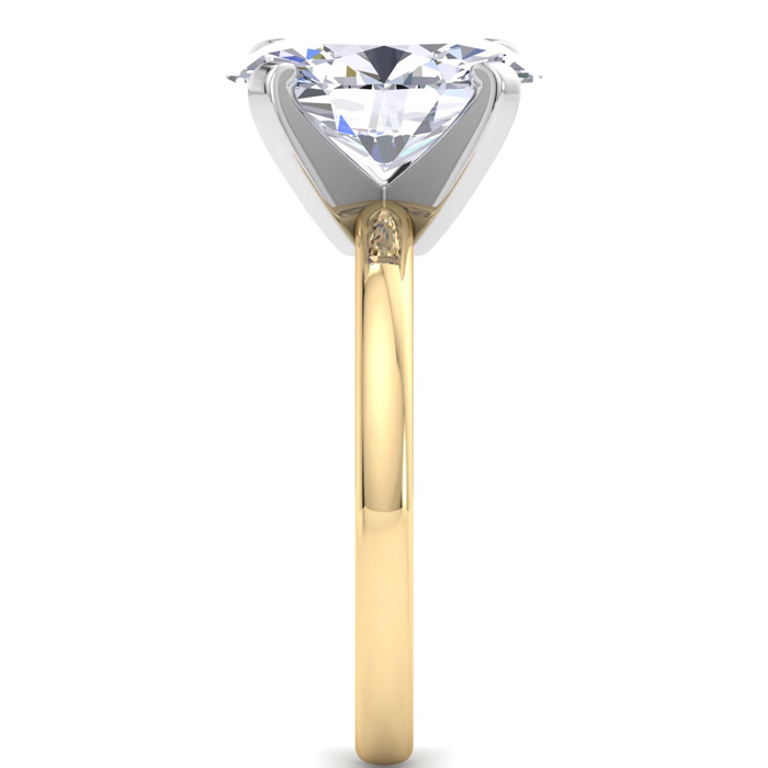 This lab grown diamond ring features a 4 carat oval shape center lab grown diamond in G-H color, VS clarity. This ring is in 14 karat yellow gold.