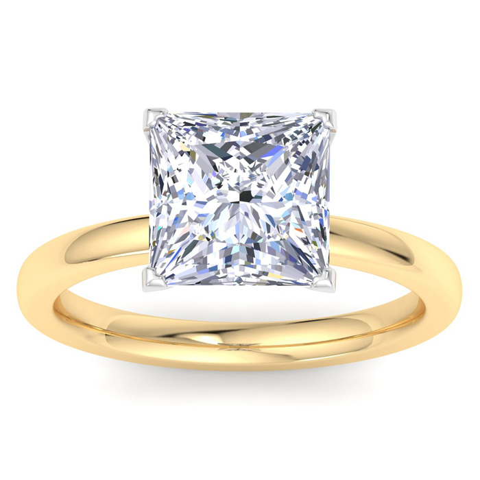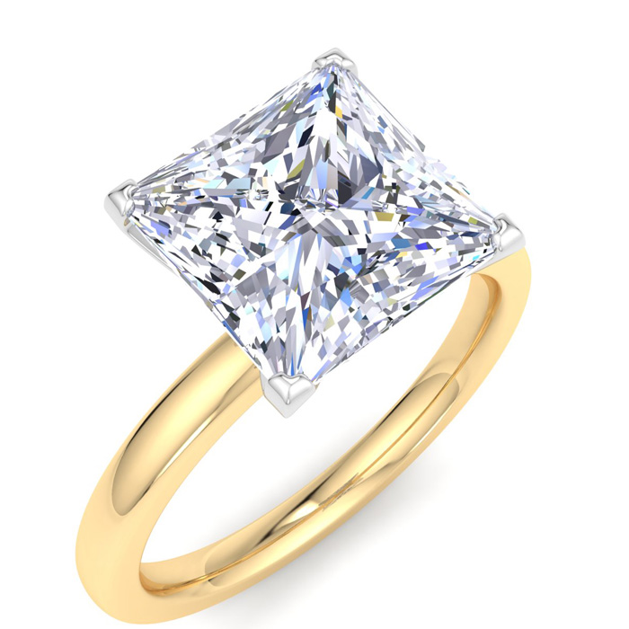 4 Carat Princess Cut Lab Grown Diamond Ring In 14K Yellow Gold, Solitaire