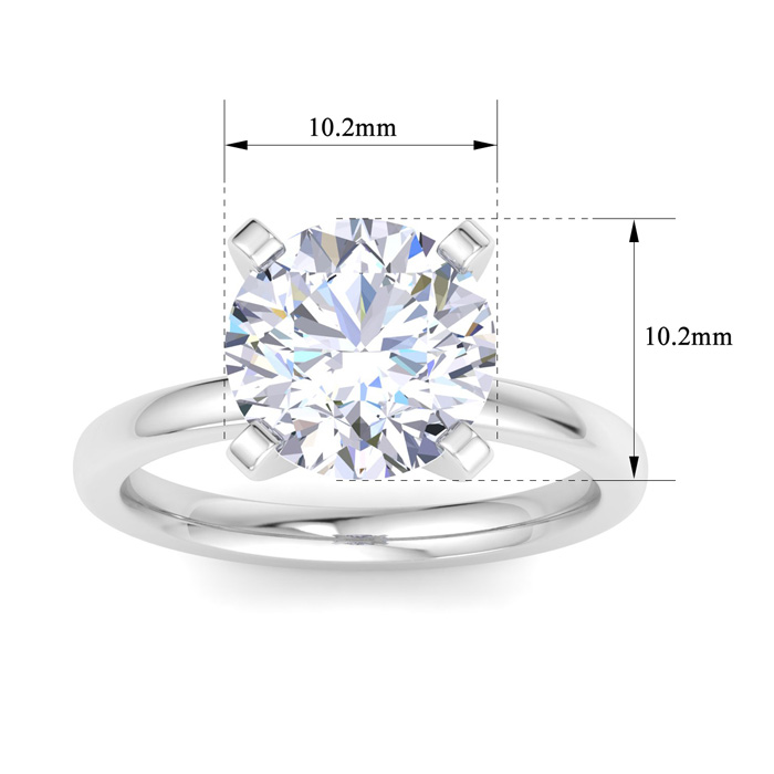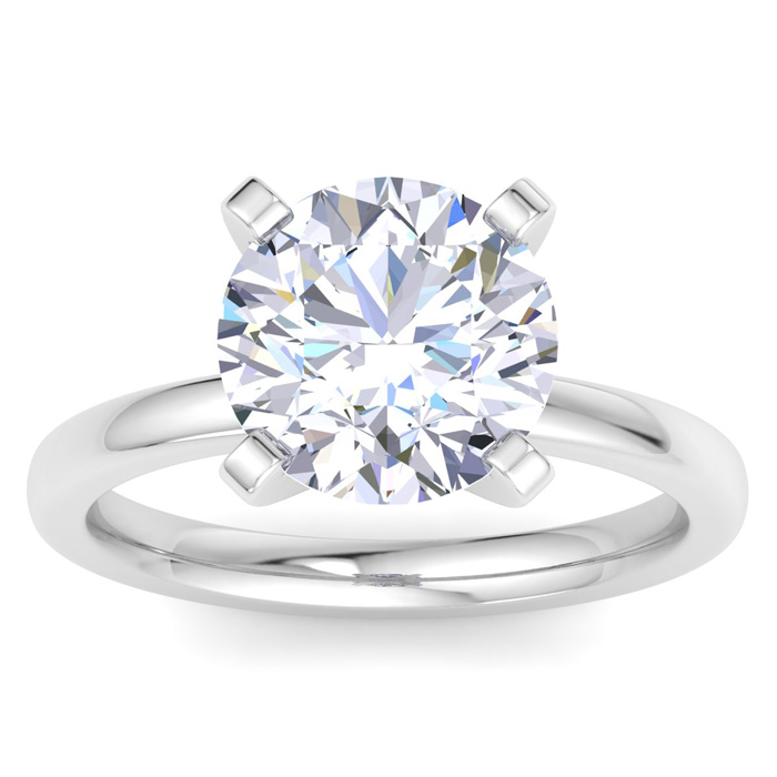 4 Carat Round Shape Lab Grown Diamond Ring In 14K White Gold, Solitaire