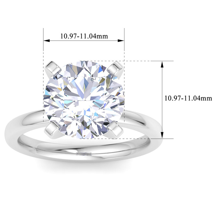 5.02 Carat Round Shape Lab Grown Diamond Ring In 14K White Gold, Solitaire