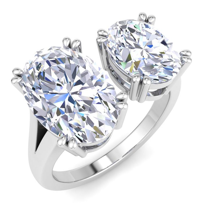 5 Carat Lab Grown Diamond Two Stone Engagement Ring In 14 Karat White Gold, Oval