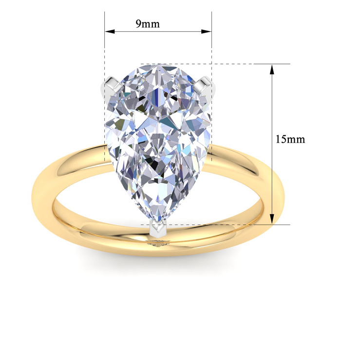 5 Carat Pear Shape Lab Grown Diamond Ring In 14K Yellow Gold, Solitaire