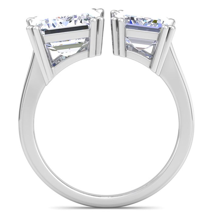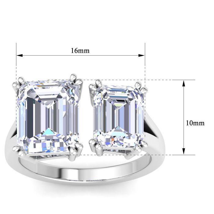 6 Carat Lab Grown Diamond Two Stone Engagement Ring In 14 Karat White Gold, Emerald