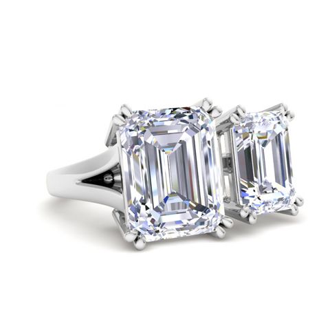 6 Carat Lab Grown Diamond Two Stone Engagement Ring In 14 Karat White Gold, Emerald