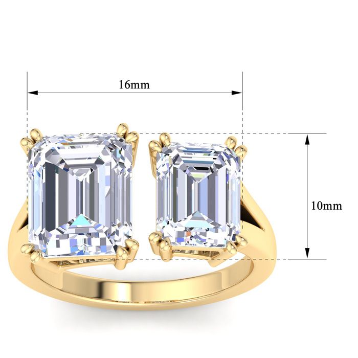 6 Carat Lab Grown Diamond Two Stone Engagement Ring In 14 Karat Yellow Gold, Emerald