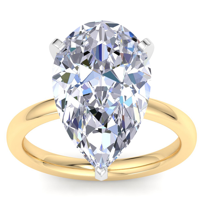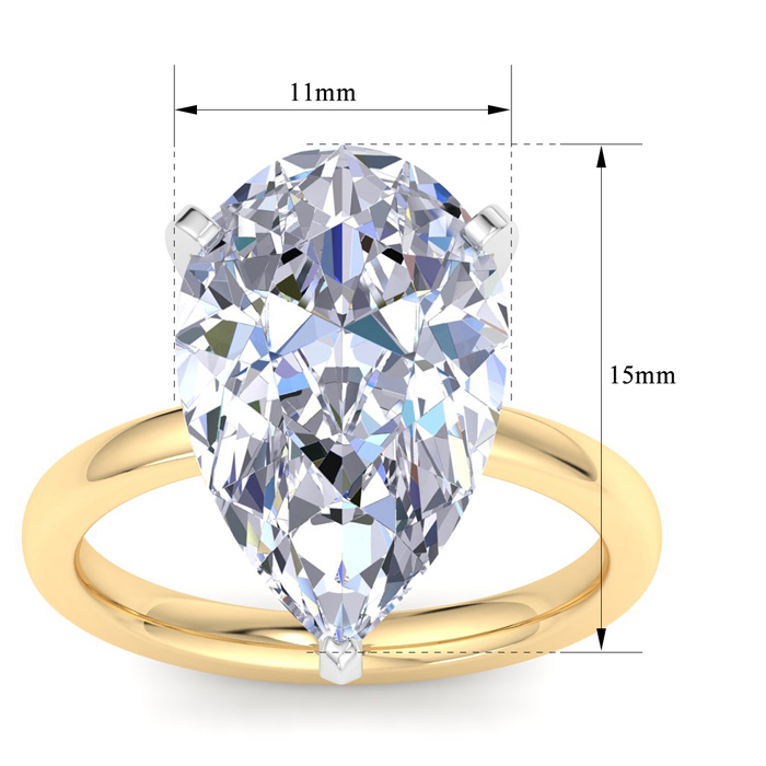 7 Carat Pear Shape Lab Grown Diamond Ring In 14K Yellow Gold, Solitaire