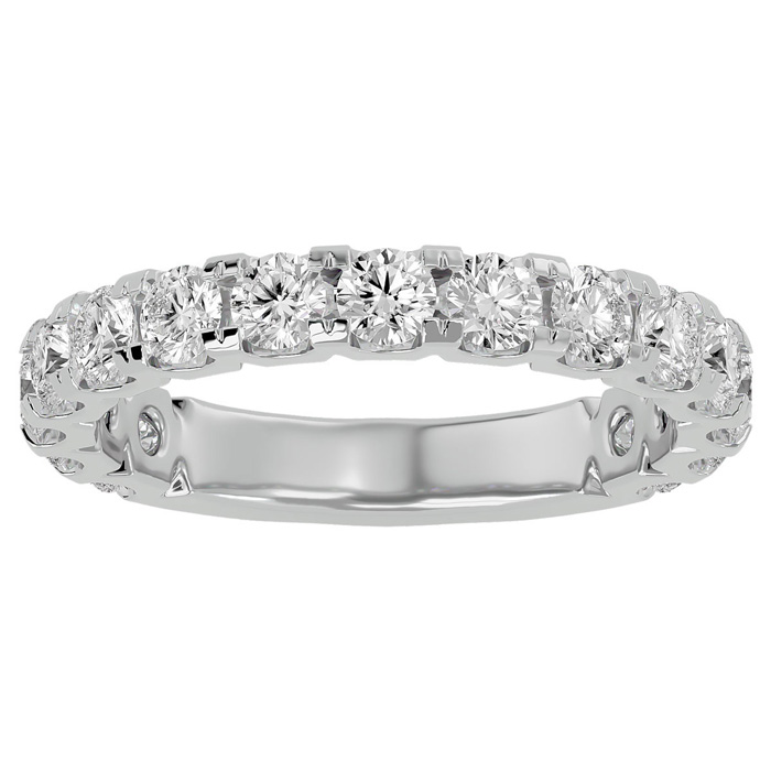 This elegant matching wedding diamond wedding band ring features a sparkling 16 round lab grown diamond in G-H color, VS clarity. Approximately total diamond weight in the ring about 1 1/2 Carat. Total carat weight is approximately 1 1/2 carats. This ring is in 14 karat white gold.