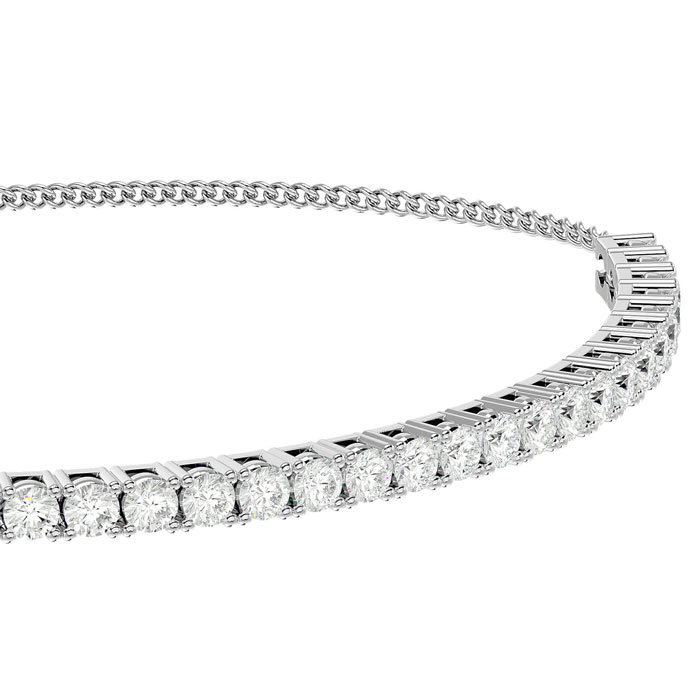 This 2 carat lab grown diamond tennis bracelet features 24 round-cut lab grown diamonds. The stones are set in solid 14-karat white gold. Diamond color is G-H, diamond clarity is VS. This bracelet has an adjustable bolo clasp and will fit any wrist size.
