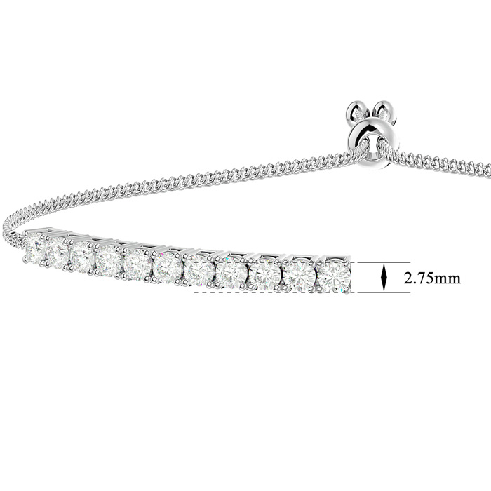 2 Carat Lab Grown Diamond Bolo Tennis Bracelet In 14 Karat White Gold, Adjustable 6-9 inches
