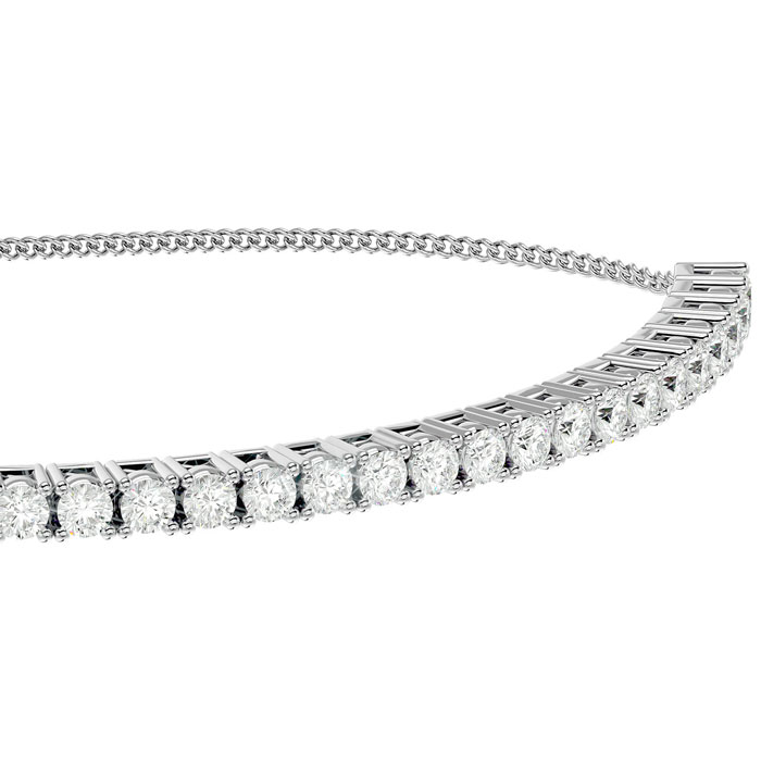 This 4 carat lab grown diamond tennis bracelet features 13 round-cut lab grown diamonds. The stones are set in solid 14-karat white gold. Diamond color is G-H, diamond clarity is VS. This bracelet has an adjustable bolo clasp and will fit any wrist size.