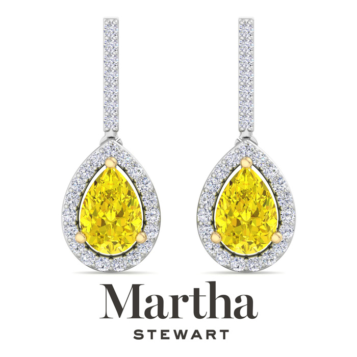 Showcasing class, style and timeless sophistication, the Martha Stewart fine jewelry collection is here to be celebrated. These Martha Stewart lab grown diamond earrings feature 52 round shape lab grown diamonds in G-H color, VS clarity and two 1 carat pear shape fancy yellow lab grown diamonds. Total carat weight is 2 1/2 carats. These earrings are in Sterling Silver and have post with screw backs. These earrings dangle down 1 inch! Whether worn for a special event or to enhance everyday elegance, these earrings are sure to become cherished heirlooms. Martha Stewart’s attention to detail and dedication to quality shine through in every piece, making this collection a celebration of refined craftsmanship and timeless beauty.