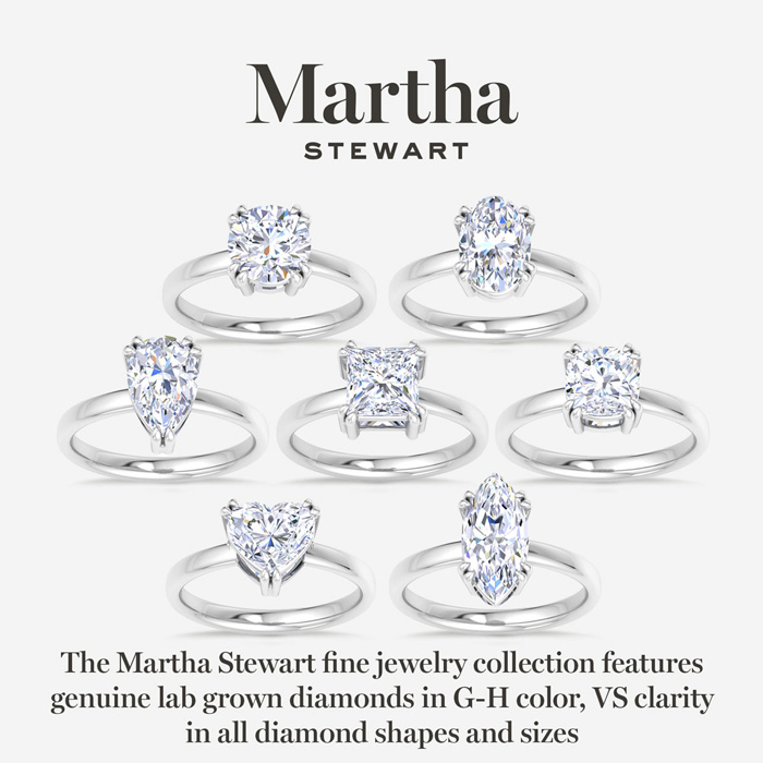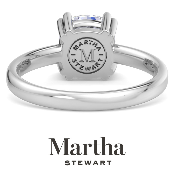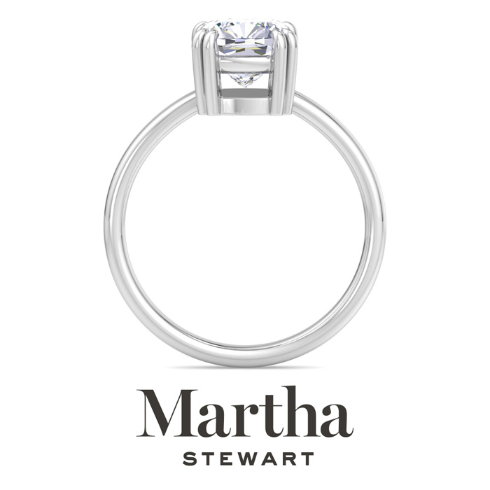 Showcasing class, style and timeless sophistication, the Martha Stewart fine jewelry collection is here to be celebrated. This Martha Stewart lab grown diamond ring features a 2 carat cushion cut center lab grown diamond in G-H color, VS clarity. This ring is in Sterling Silver. This Martha Stewart ring has a double prong setting and is comfort fit for a luxurious feel on your finger. This ring also has a patent pending mirrored setting which increases the primary diamond's brilliance and beauty. Whether for a special occasion or to add a touch of elegance to everyday wear, this ring is sure to become a beloved heirloom. Martha Stewart’s dedication to quality and attention to detail are reflected in every piece, making this collection a celebration of timeless beauty and exceptional craftsmanship.