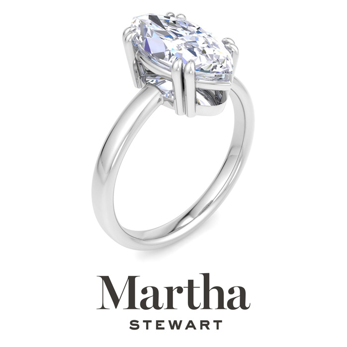 Showcasing class, style and timeless sophistication, the Martha Stewart fine jewelry collection is here to be celebrated. This Martha Stewart lab grown diamond ring features a 2 carat marquise shape center lab grown diamond in G-H color, VS clarity. This ring is in Sterling Silver. This Martha Stewart ring has a double prong setting and is comfort fit for a luxurious feel on your finger. This ring also has a patent pending mirrored setting which increases the primary diamond's brilliance and beauty. Whether for a special occasion or to add a touch of elegance to everyday wear, this ring is sure to become a beloved heirloom. Martha Stewart’s dedication to quality and attention to detail are reflected in every piece, making this collection a celebration of timeless beauty and exceptional craftsmanship.