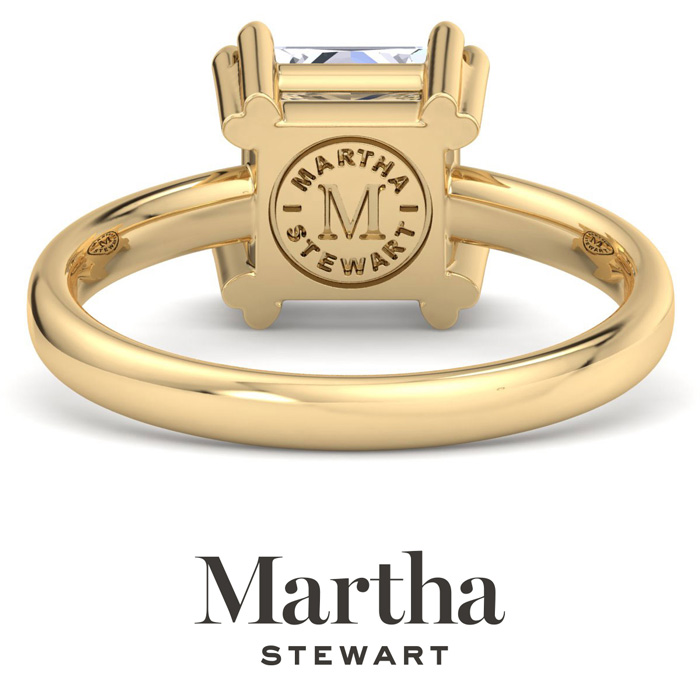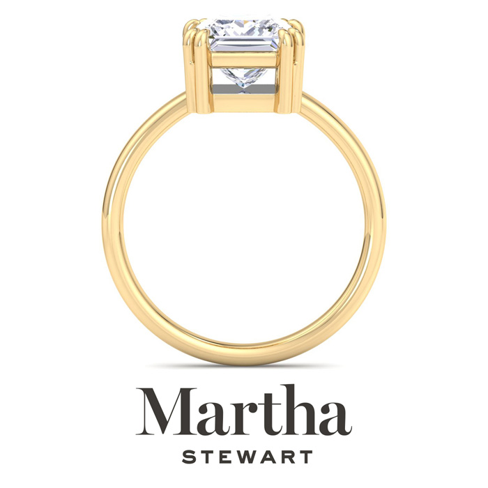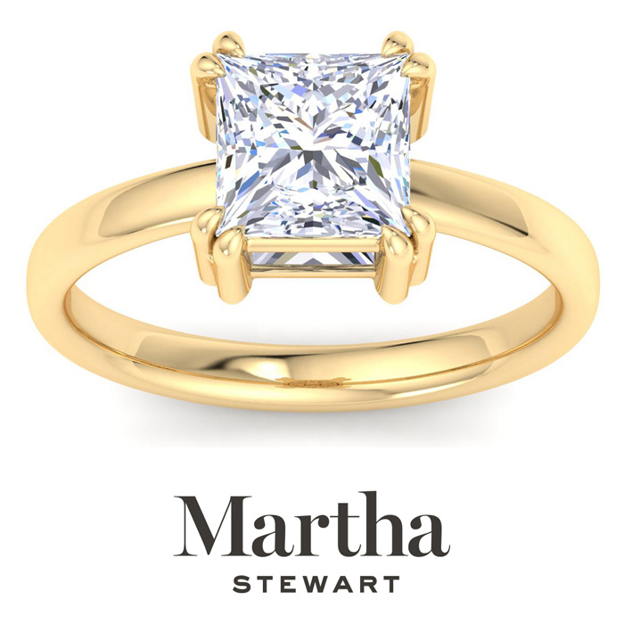 Showcasing class, style and timeless sophistication, the Martha Stewart fine jewelry collection is here to be celebrated. This Martha Stewart lab grown diamond ring features a 2 carat princess cut center lab grown diamond in G-H color, VS clarity. This ring is in 14 karat yellow gold. This Martha Stewart ring has a double prong setting and is comfort fit for a luxurious feel on your finger. This ring also has a patent pending mirrored setting which increases the primary diamond's brilliance and beauty. Whether for a special occasion or to add a touch of elegance to everyday wear, this ring is sure to become a beloved heirloom. Martha Stewart’s dedication to quality and attention to detail are reflected in every piece, making this collection a celebration of timeless beauty and exceptional craftsmanship.