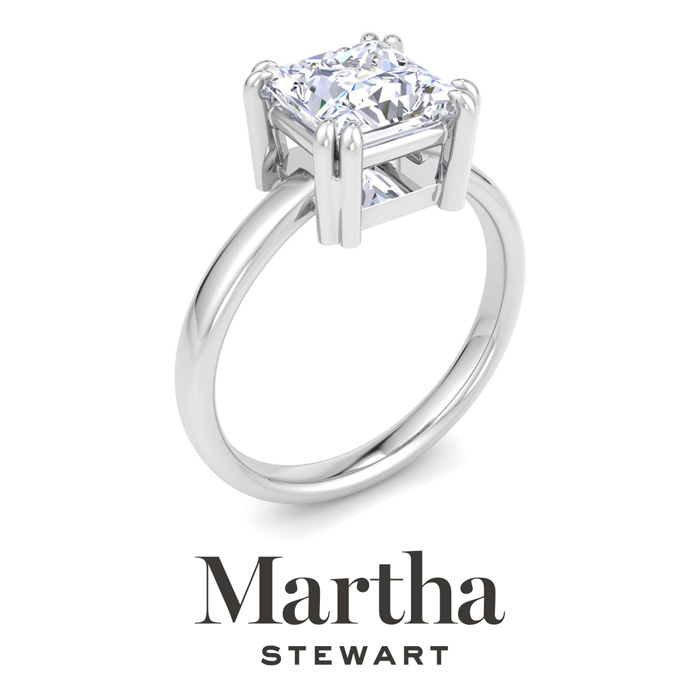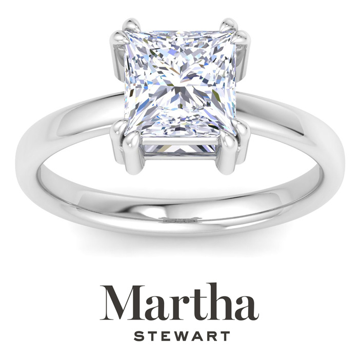 Showcasing class, style and timeless sophistication, the Martha Stewart fine jewelry collection is here to be celebrated. This Martha Stewart lab grown diamond ring features a 2 carat princess cut center lab grown diamond in G-H color, VS clarity. This ring is in Sterling Silver. This Martha Stewart ring has a double prong setting and is comfort fit for a luxurious feel on your finger. This ring also has a patent pending mirrored setting which increases the primary diamond's brilliance and beauty. Whether for a special occasion or to add a touch of elegance to everyday wear, this ring is sure to become a beloved heirloom. Martha Stewart’s dedication to quality and attention to detail are reflected in every piece, making this collection a celebration of timeless beauty and exceptional craftsmanship.