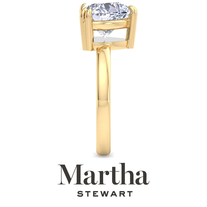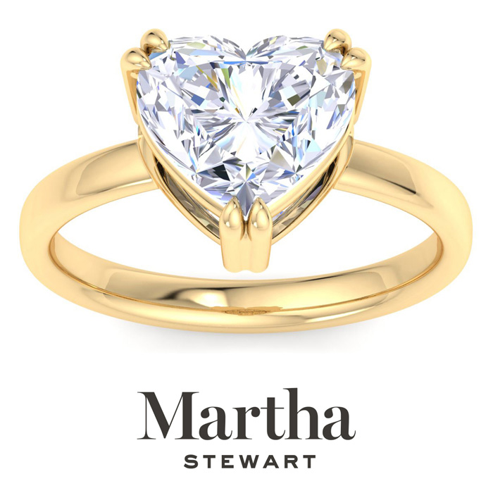 Showcasing class, style and timeless sophistication, the Martha Stewart fine jewelry collection is here to be celebrated. This Martha Stewart lab grown diamond ring features a 3 carat heart shape center lab grown diamond in G-H color, VS clarity. This ring is in 14 karat yellow gold. This Martha Stewart ring has a double prong setting and is comfort fit for a luxurious feel on your finger. This ring also has a patent pending mirrored setting which increases the primary diamond's brilliance and beauty. Whether for a special occasion or to add a touch of elegance to everyday wear, this ring is sure to become a beloved heirloom. Martha Stewart’s dedication to quality and attention to detail are reflected in every piece, making this collection a celebration of timeless beauty and exceptional craftsmanship.