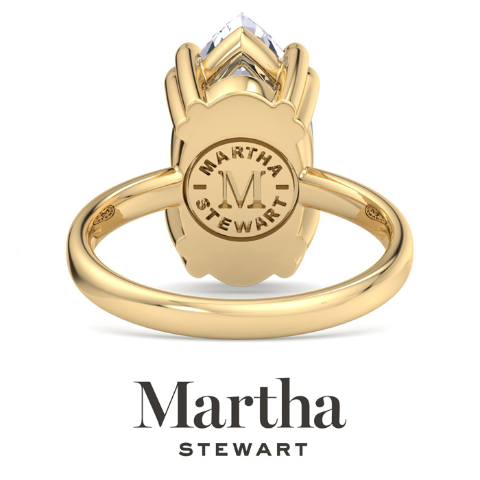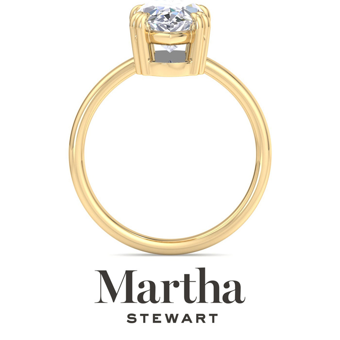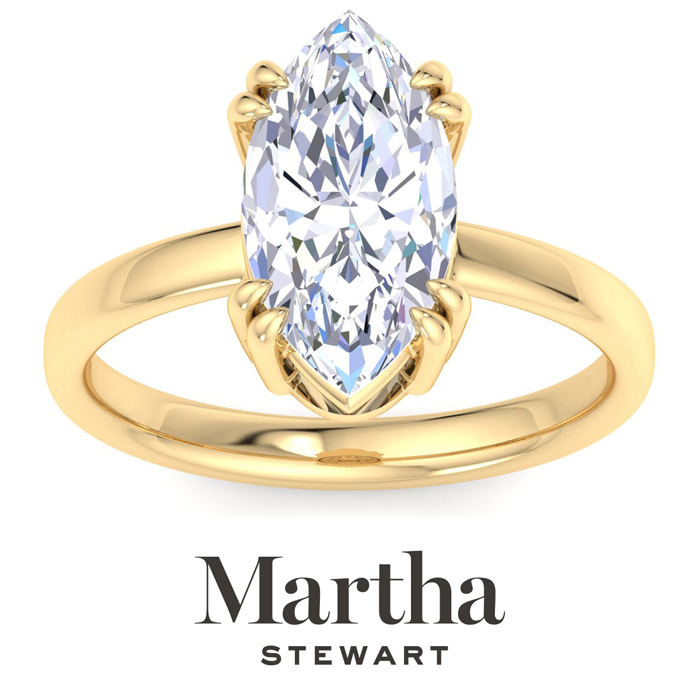Showcasing class, style and timeless sophistication, the Martha Stewart fine jewelry collection is here to be celebrated. This Martha Stewart lab grown diamond ring features a 3 carat marquise shape center lab grown diamond in G-H color, VS clarity. This ring is in 14 karat yellow gold. This Martha Stewart ring has a double prong setting and is comfort fit for a luxurious feel on your finger. This ring also has a patent pending mirrored setting which increases the primary diamond's brilliance and beauty. Whether for a special occasion or to add a touch of elegance to everyday wear, this ring is sure to become a beloved heirloom. Martha Stewart’s dedication to quality and attention to detail are reflected in every piece, making this collection a celebration of timeless beauty and exceptional craftsmanship.