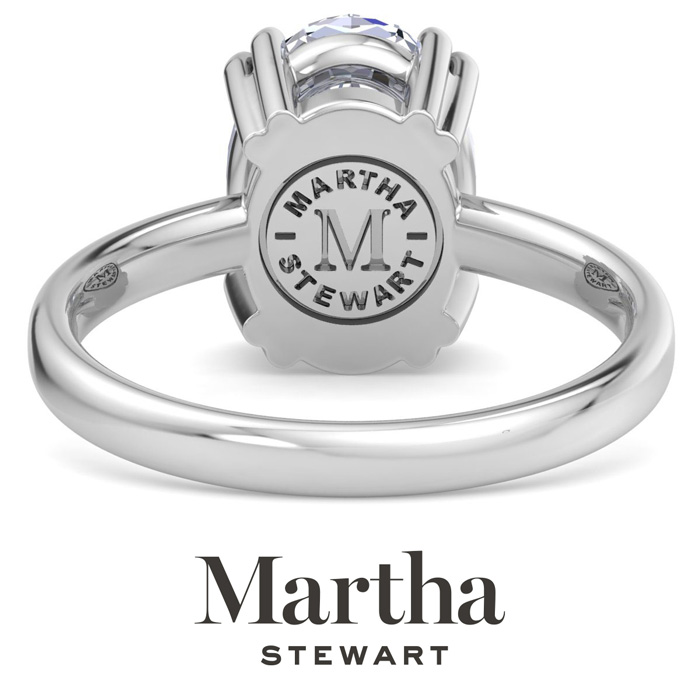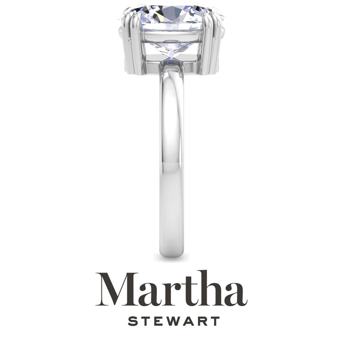 Showcasing class, style and timeless sophistication, the Martha Stewart fine jewelry collection is here to be celebrated. This Martha Stewart lab grown diamond ring features a 3 carat oval shape center lab grown diamond in G-H color, VS clarity. This ring is in Sterling Silver. This Martha Stewart ring has a double prong setting and is comfort fit for a luxurious feel on your finger. This ring also has a patent pending mirrored setting which increases the primary diamond's brilliance and beauty. Whether for a special occasion or to add a touch of elegance to everyday wear, this ring is sure to become a beloved heirloom. Martha Stewart’s dedication to quality and attention to detail are reflected in every piece, making this collection a celebration of timeless beauty and exceptional craftsmanship.