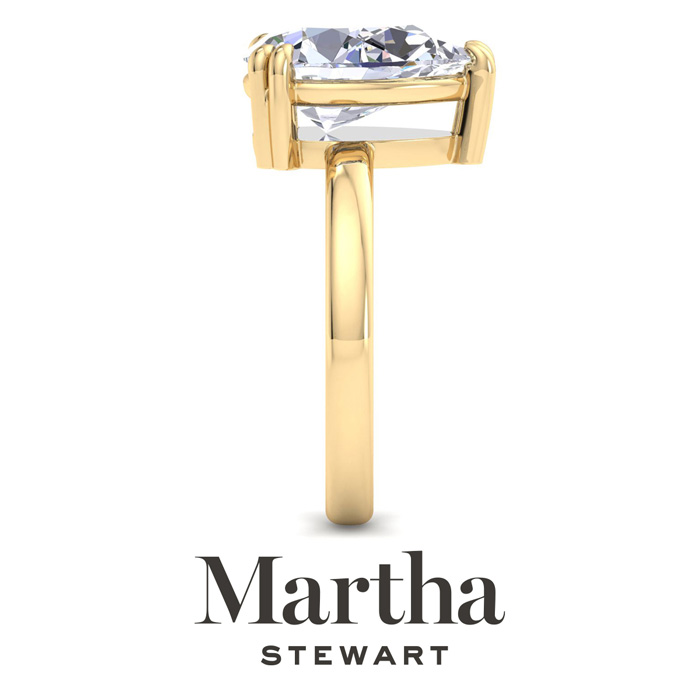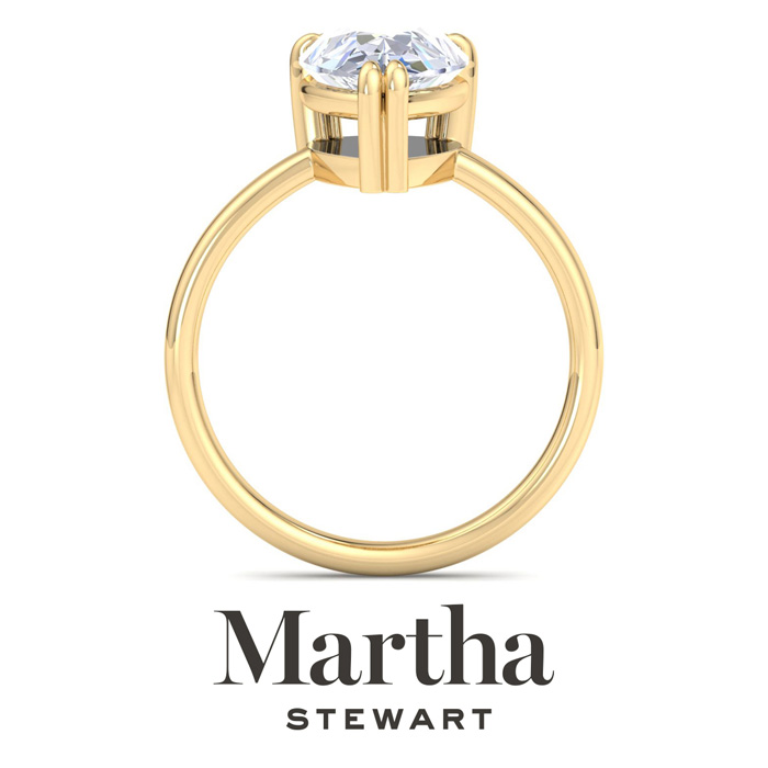 Showcasing class, style and timeless sophistication, the Martha Stewart fine jewelry collection is here to be celebrated. This Martha Stewart lab grown diamond ring features a 3 carat pear shape center lab grown diamond in G-H color, VS clarity. This ring is in 14 karat yellow gold. This Martha Stewart ring has a double prong setting and is comfort fit for a luxurious feel on your finger. This ring also has a patent pending mirrored setting which increases the primary diamond's brilliance and beauty. Whether for a special occasion or to add a touch of elegance to everyday wear, this ring is sure to become a beloved heirloom. Martha Stewart’s dedication to quality and attention to detail are reflected in every piece, making this collection a celebration of timeless beauty and exceptional craftsmanship.