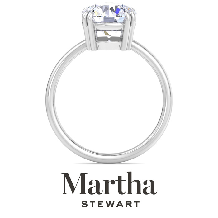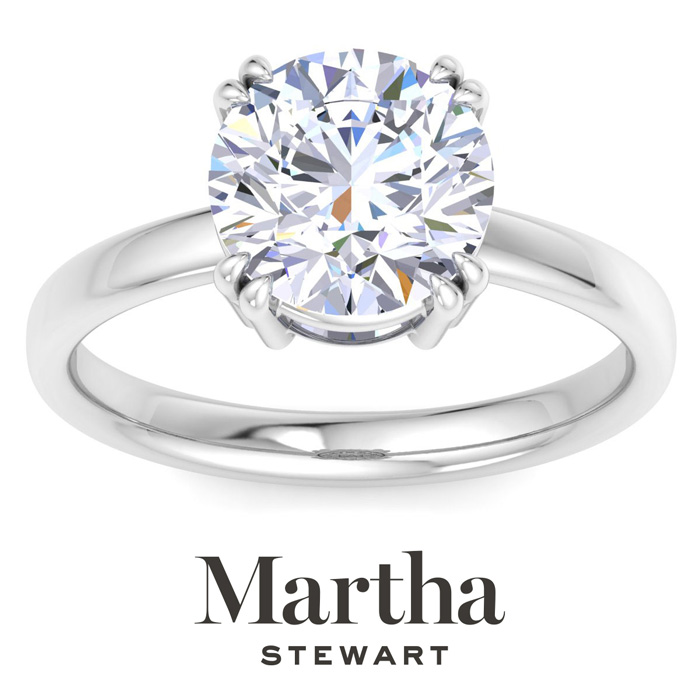 Showcasing class, style and timeless sophistication, the Martha Stewart fine jewelry collection is here to be celebrated. This Martha Stewart lab grown diamond ring features a 3 carat round shape center lab grown diamond in G-H color, VS clarity. This ring is in 14 karat white gold. This Martha Stewart ring has a double prong setting and is comfort fit for a luxurious feel on your finger. This ring also has a patent pending mirrored setting which increases the primary diamond's brilliance and beauty. Whether for a special occasion or to add a touch of elegance to everyday wear, this ring is sure to become a beloved heirloom. Martha Stewart’s dedication to quality and attention to detail are reflected in every piece, making this collection a celebration of timeless beauty and exceptional craftsmanship.