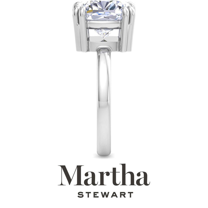 Showcasing class, style and timeless sophistication, the Martha Stewart fine jewelry collection is here to be celebrated. This Martha Stewart lab grown diamond ring features a 5 carat cushion cut center lab grown diamond in G-H color, VS clarity. This ring is in Sterling Silver. This Martha Stewart ring has a double prong setting and is comfort fit for a luxurious feel on your finger. This ring also has a patent pending mirrored setting which increases the primary diamond's brilliance and beauty. Whether for a special occasion or to add a touch of elegance to everyday wear, this ring is sure to become a beloved heirloom. Martha Stewart’s dedication to quality and attention to detail are reflected in every piece, making this collection a celebration of timeless beauty and exceptional craftsmanship.