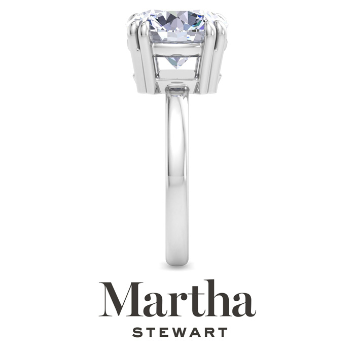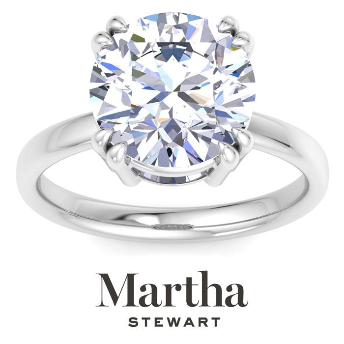 Showcasing class, style and timeless sophistication, the Martha Stewart fine jewelry collection is here to be celebrated. This Martha Stewart lab grown diamond ring features a 5 carat round shape center lab grown diamond in G-H color, VS clarity. This ring is in 14 karat white gold. This Martha Stewart ring has a double prong setting and is comfort fit for a luxurious feel on your finger. This ring also has a patent pending mirrored setting which increases the primary diamond's brilliance and beauty. Whether for a special occasion or to add a touch of elegance to everyday wear, this ring is sure to become a beloved heirloom. Martha Stewart’s dedication to quality and attention to detail are reflected in every piece, making this collection a celebration of timeless beauty and exceptional craftsmanship.