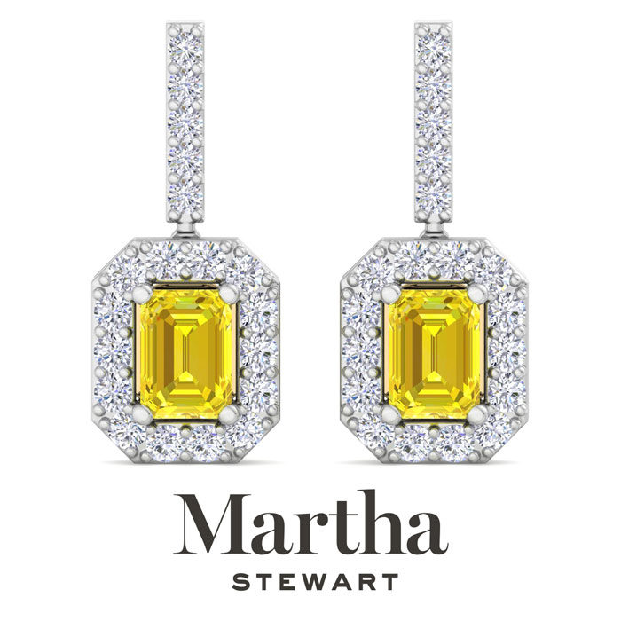 Showcasing class, style and timeless sophistication, the Martha Stewart fine jewelry collection is here to be celebrated. These Martha Stewart lab grown diamond earrings feature 38 round shape lab grown diamonds in G-H color, VS clarity and two 2 carat emerald cut fancy yellow lab grown diamonds. Total carat weight is 6 carats. These earrings are in 14 karat white gold and have post with screw backs. These earrings dangle down 1 inch! Whether worn for a special event or to enhance everyday elegance, these earrings are sure to become cherished heirlooms. Martha Stewart’s attention to detail and dedication to quality shine through in every piece, making this collection a celebration of refined craftsmanship and timeless beauty.