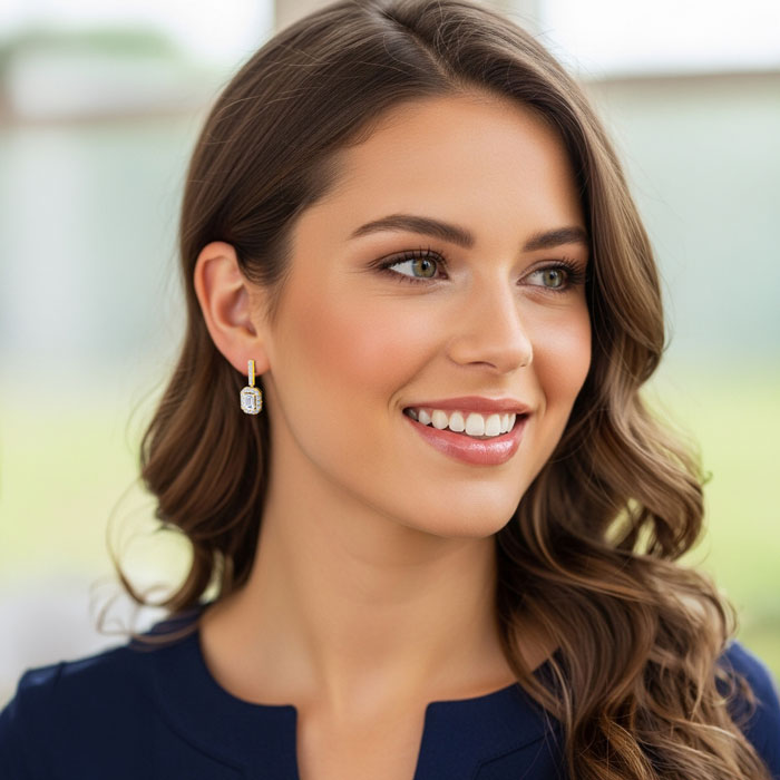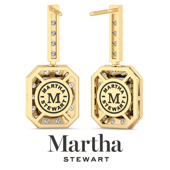 Showcasing class, style and timeless sophistication, the Martha Stewart fine jewelry collection is here to be celebrated. These Martha Stewart lab grown diamond earrings feature 38 round shape lab grown diamonds in G-H color, VS clarity and two 2 carat emerald cut lab grown diamonds. Total carat weight is 6 carats. These earrings are in 14 karat yellow gold and have post with screw backs. These earrings dangle down 1 inch! Whether worn for a special event or to enhance everyday elegance, these earrings are sure to become cherished heirlooms. Martha Stewart’s attention to detail and dedication to quality shine through in every piece, making this collection a celebration of refined craftsmanship and timeless beauty.