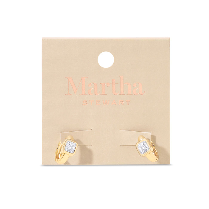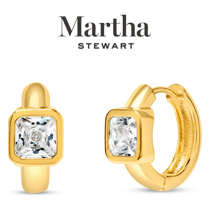 Exuding class, style, and timeless elegance, the Martha Stewart fashion jewelry collection is a true celebration of sophistication. Each piece is thoughtfully designed with high-quality materials, offering a balance of sophistication and style. From understated classics to bold statement designs, the collection adds a touch of luxury to any outfit, making Martha Stewart jewelry the perfect finishing accent for every occasion. These Martha Stewart Gold Huggie Hoop Earrings feature crystal accents and dangle down 1/2 inch and have secure, hidden snap backs. These earrings are finely crafted in yellow gold tone over brass metal.
