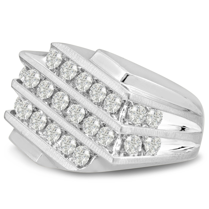 Men's diamond ring, great for a wedding band and everyday wear. This ring features 20 diamonds at 1.30ct total diamond weight. Diamond color is J-K and diamond clarity is I2. Ring is 16.76mm wide. This ring is crafted in solid 10 karat white gold and is available in ring sizes 7-13.5
