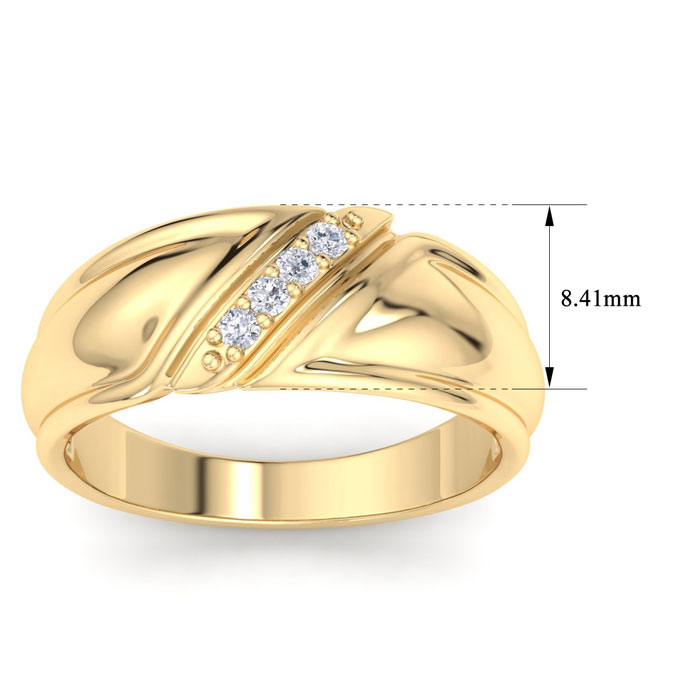 Men's diamond ring, great for a wedding band and everyday wear. This ring features 4 diamonds at 0.04ct total diamond weight. Diamond color is J-K and diamond clarity is I2. Ring is 8.41mm wide. This ring is crafted in solid 10 karat yellow gold and is available in ring sizes 7-13.5