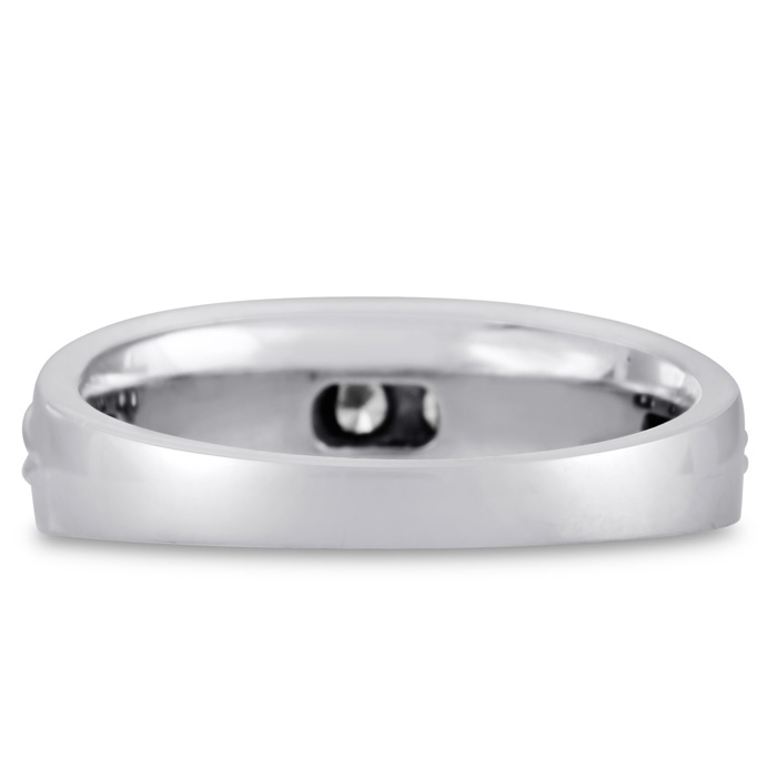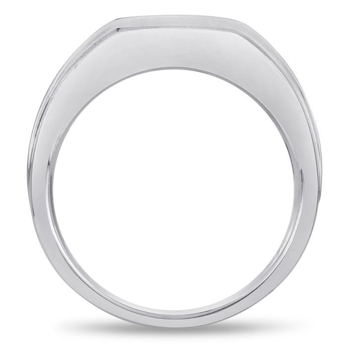 Men's diamond ring, great for a wedding band and everyday wear. This ring features 5 diamonds at 0.50ct total diamond weight. Diamond color is J-K and diamond clarity is I2. Ring is 7.34mm wide. This ring is crafted in solid 10 karat white gold and is available in ring sizes 7-13.5