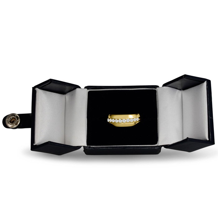 Men's diamond ring, great for a wedding band and everyday wear. This ring features 10 diamonds at 0.50ct total diamond weight. Diamond color is J-K and diamond clarity is I2. Ring is 7.80mm wide. This ring is crafted in solid 10 karat yellow gold and is available in ring sizes 7-13.5
